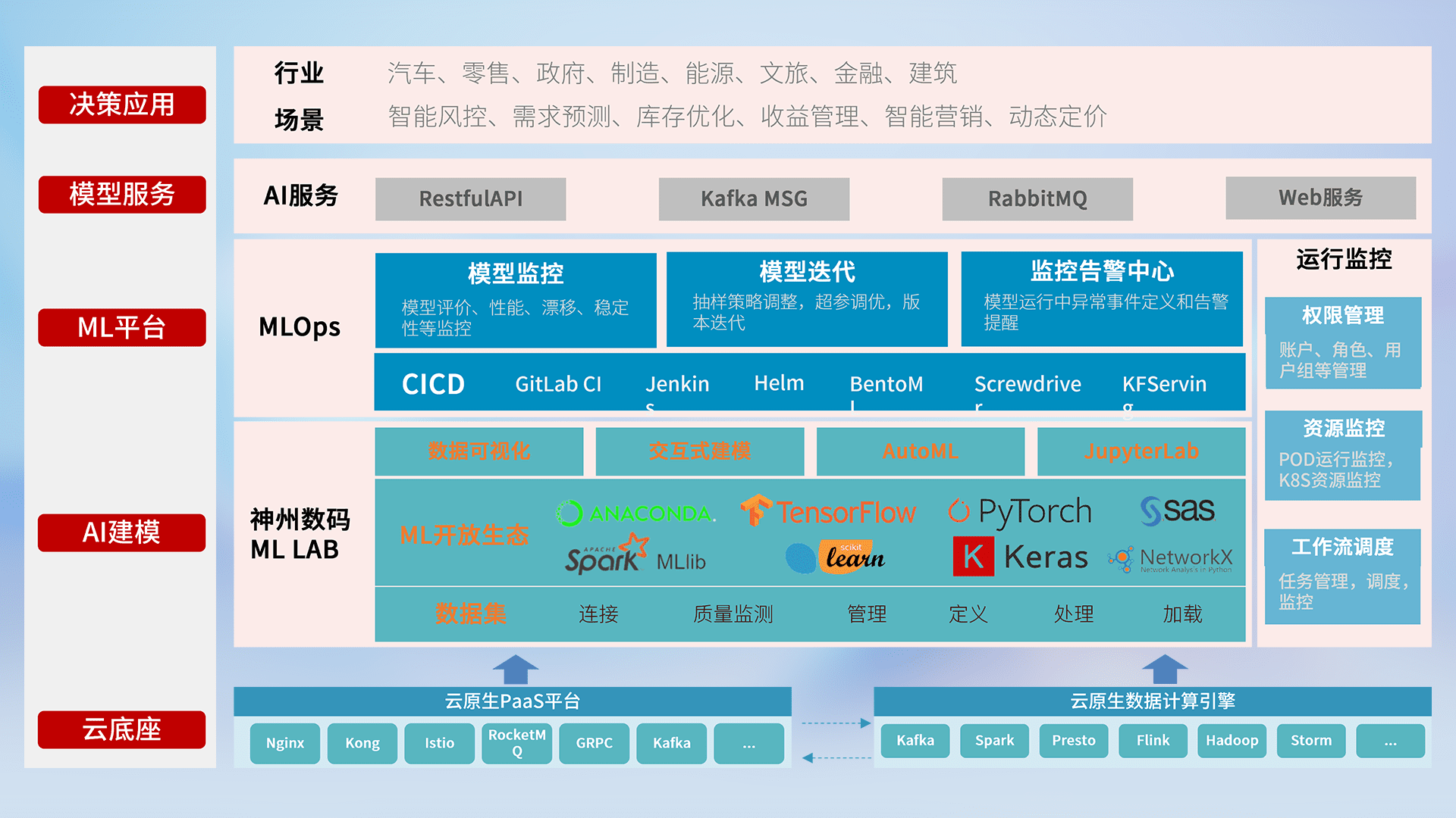 数据+模型双引擎驱动,,,,面向智能服务场景,,快速灵活利用AI技术,,,,支持业务决策,,,,助力企业智能化转型破局。。。。